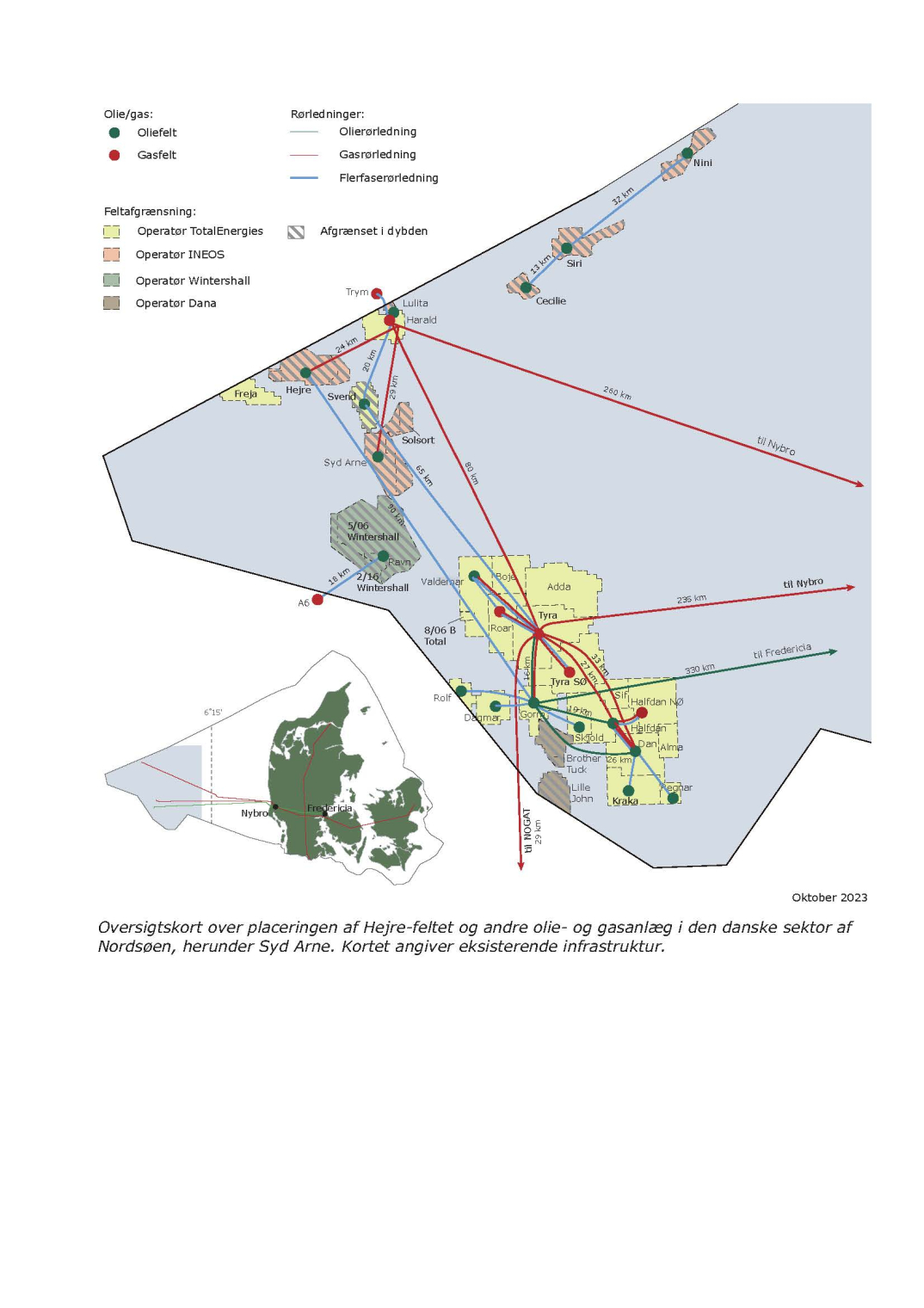 Energistyrelsen har den 26. april 2024 godkendt en revideret plan for udbygning og indvinding af kulbrinter fra Hejre-feltet i Nordsøen i henhold til undergrundslovens § 10, stk. 2 og 3. Samtidig har ansøger fået meddelt dispensation fra tilslutningspligten til det danske olierør i henhold til rørledningslovens § 2, stk. 3.